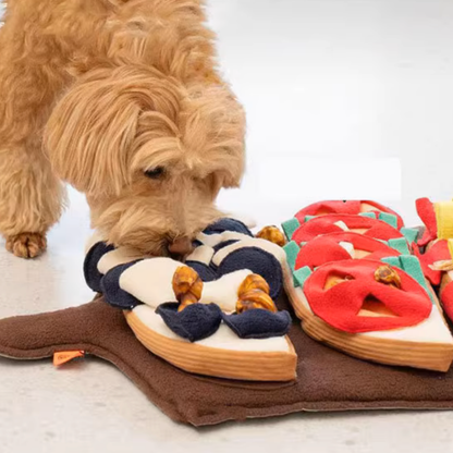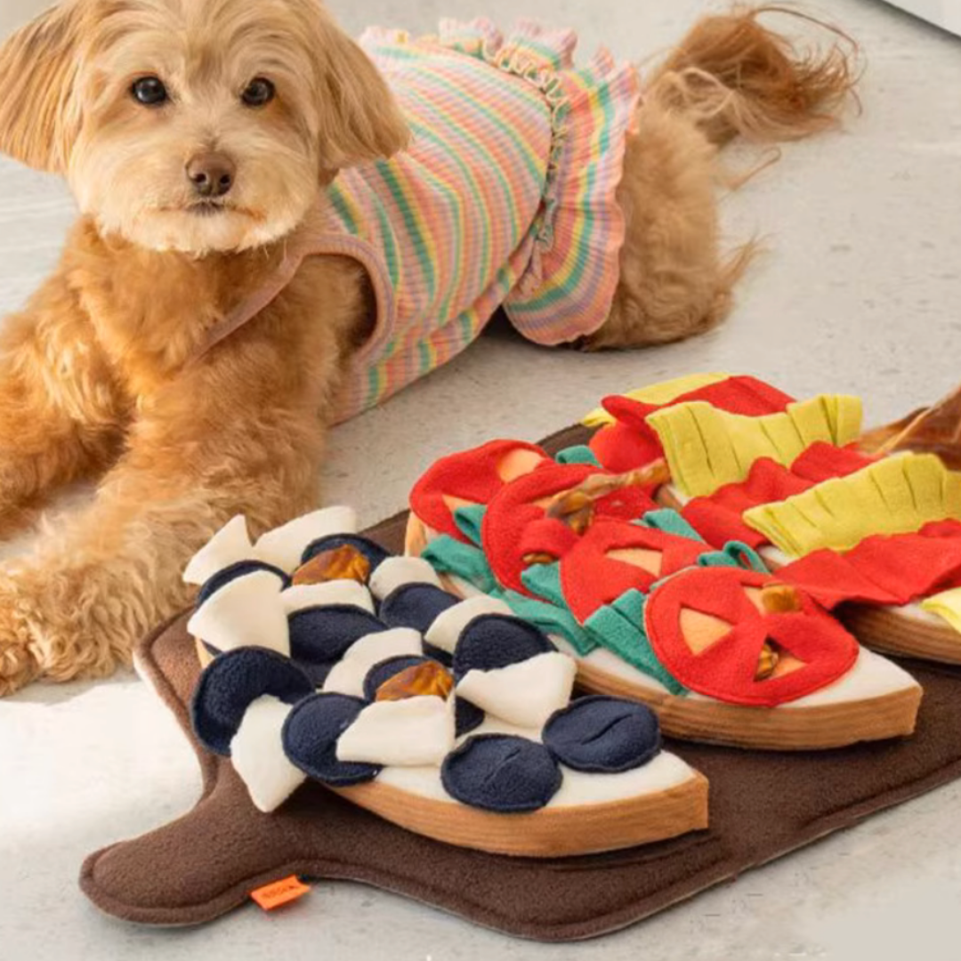 Turn playtime into a delicious adventure with the Taco Toss Puzzle Mat! Designed to enrich your dog’s mind and encourage natural sniffing behaviors, this multi-layered taco-style toy makes treat hunting fun, interactive, and rewarding. With removable components and cleverly designed pockets, this toy mimics the fun of taco toppings—perfect for hiding freeze-dried snacks, small kibble, or training treats.
